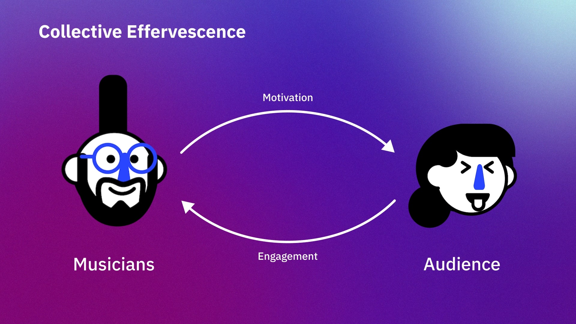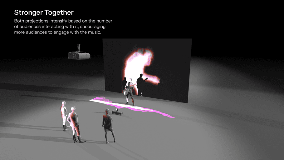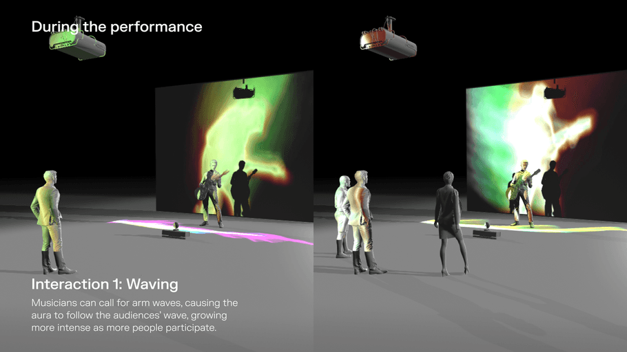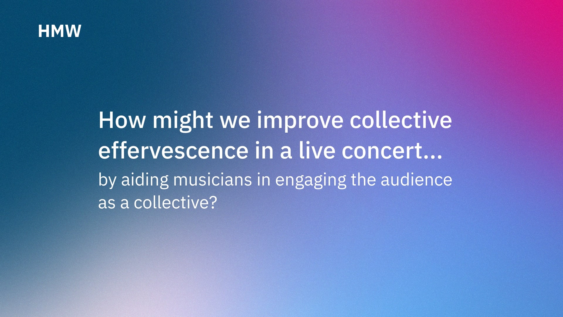 At live concerts, musicians thrive on crowd engagement, which fuels their performance. Yet, some audience members feel too self-conscious to engage with the music, creating a disconnect between musicians and those who appear disengaged, reducing their motivation to perform. We came up with the question, "How might we improve the collective effervescence in a live concert by aiding musicians in engaging the audience as a collective?"