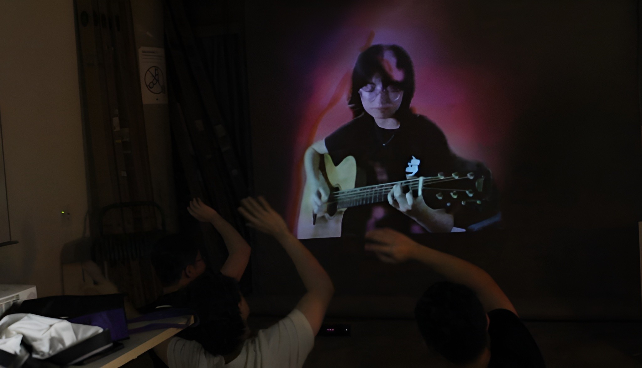 "Insync," an interactive visual system, bridges this gap by aiding musicians in engaging the audience as a whole. Using a Kinect to track audience gestures, it enhances traditional concert gestures like clapping and waving with interactive visuals that provide visual feedback, encouraging audience participation. As more people interact, the visuals intensify, motivating a larger audience to join in and fostering a deeper bond between the musician and the audience.